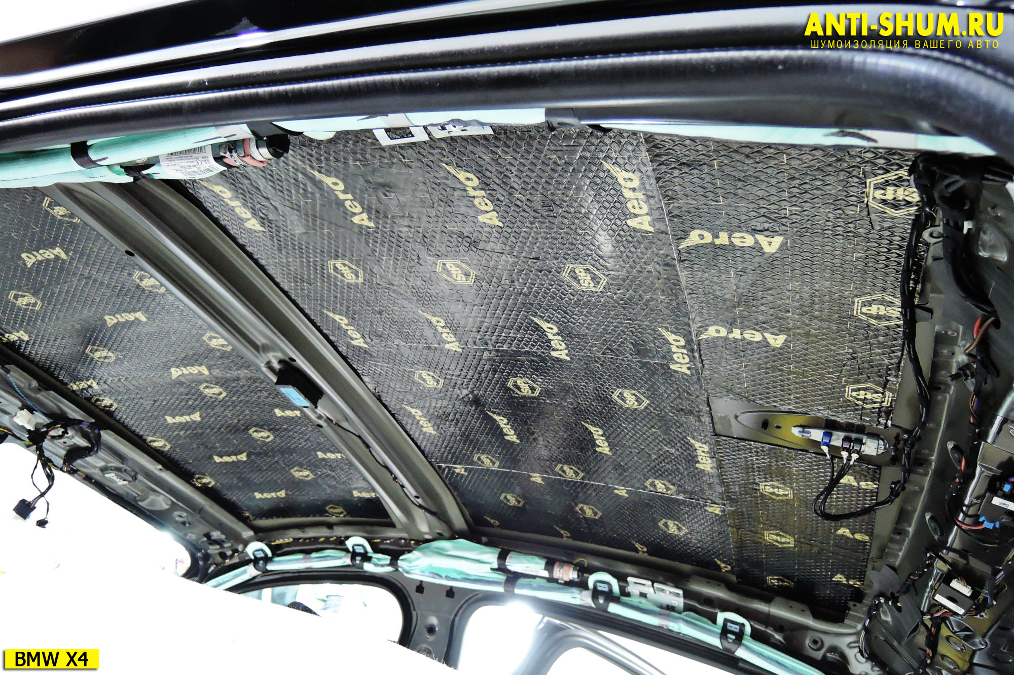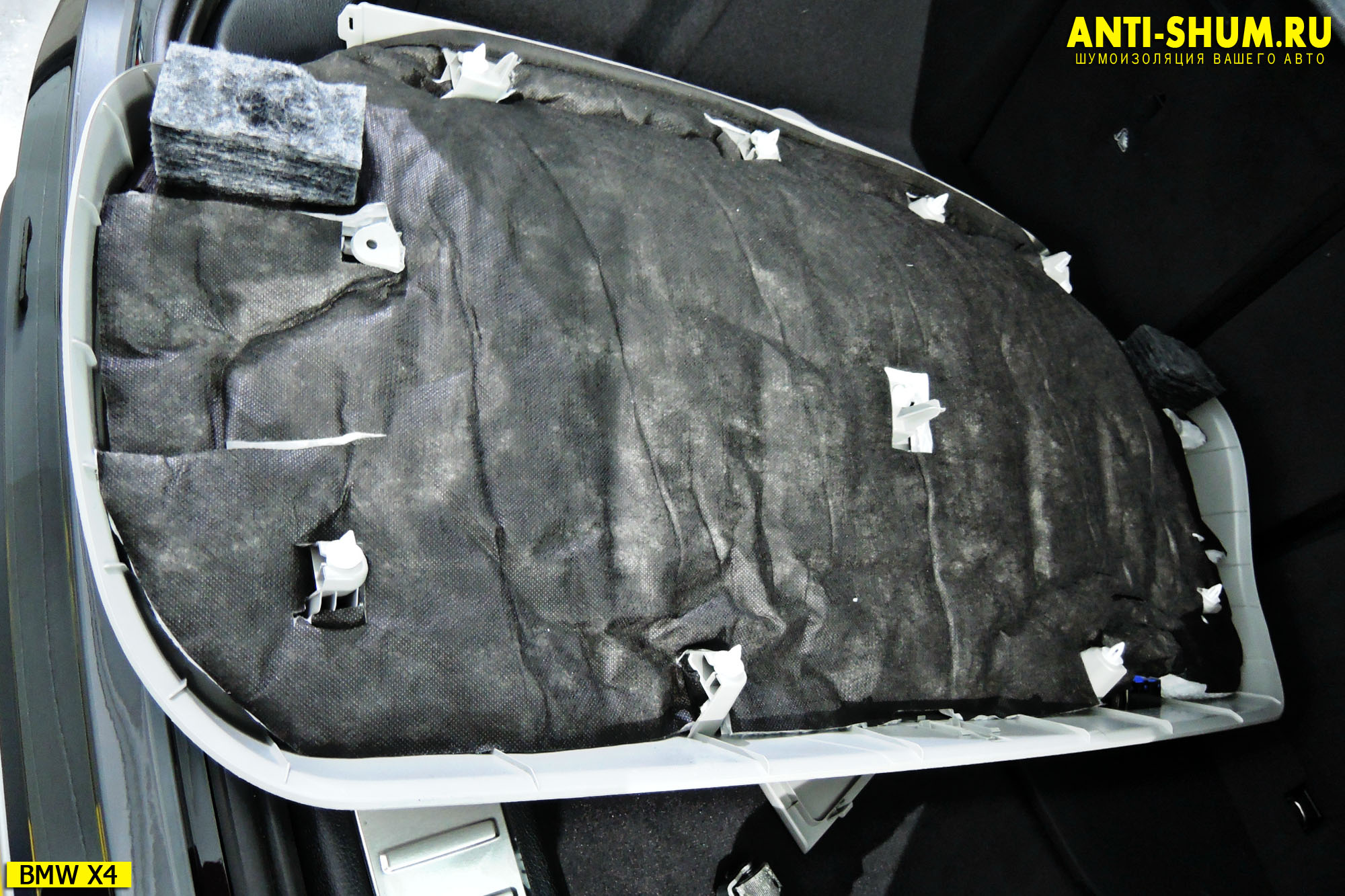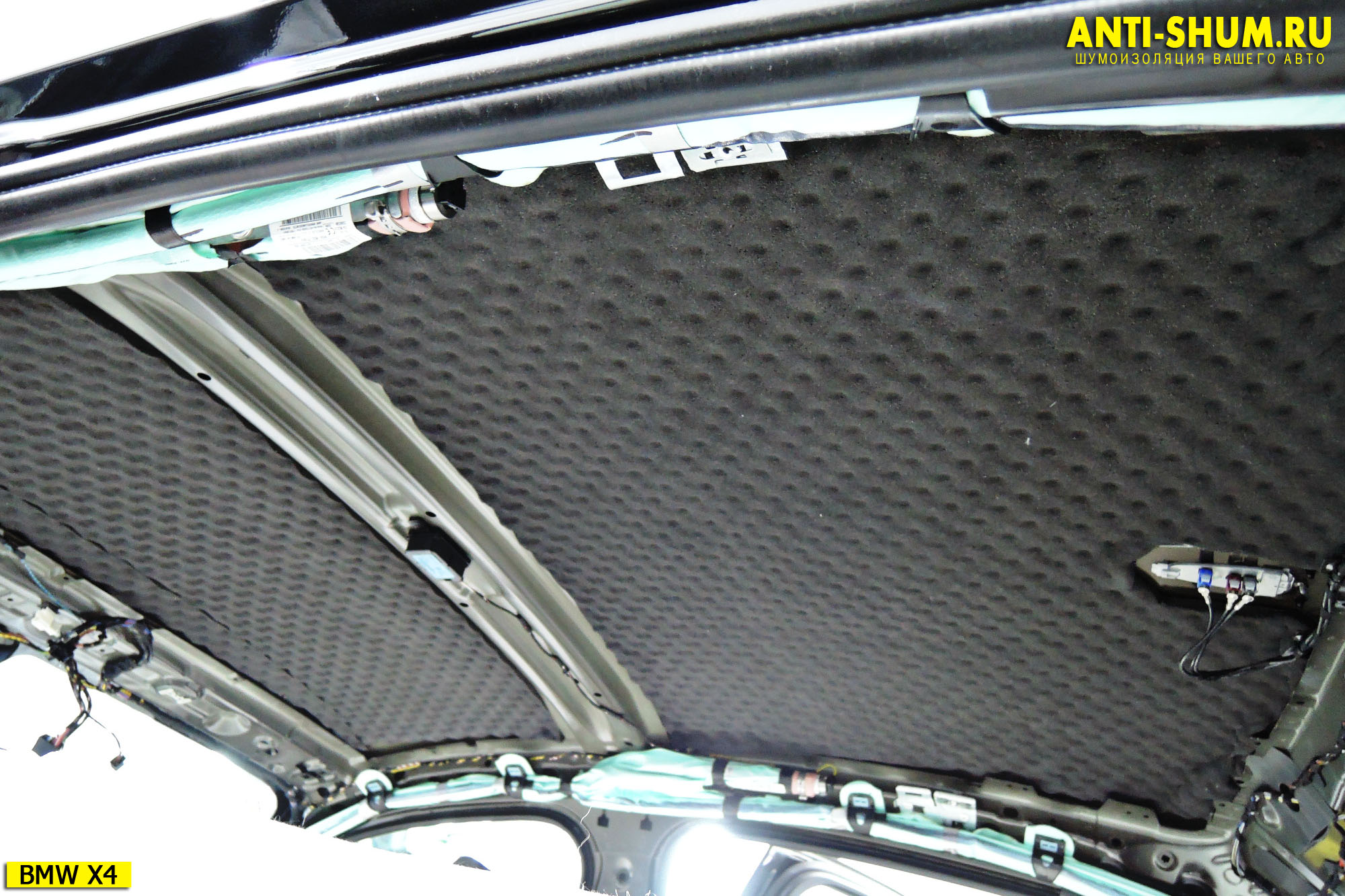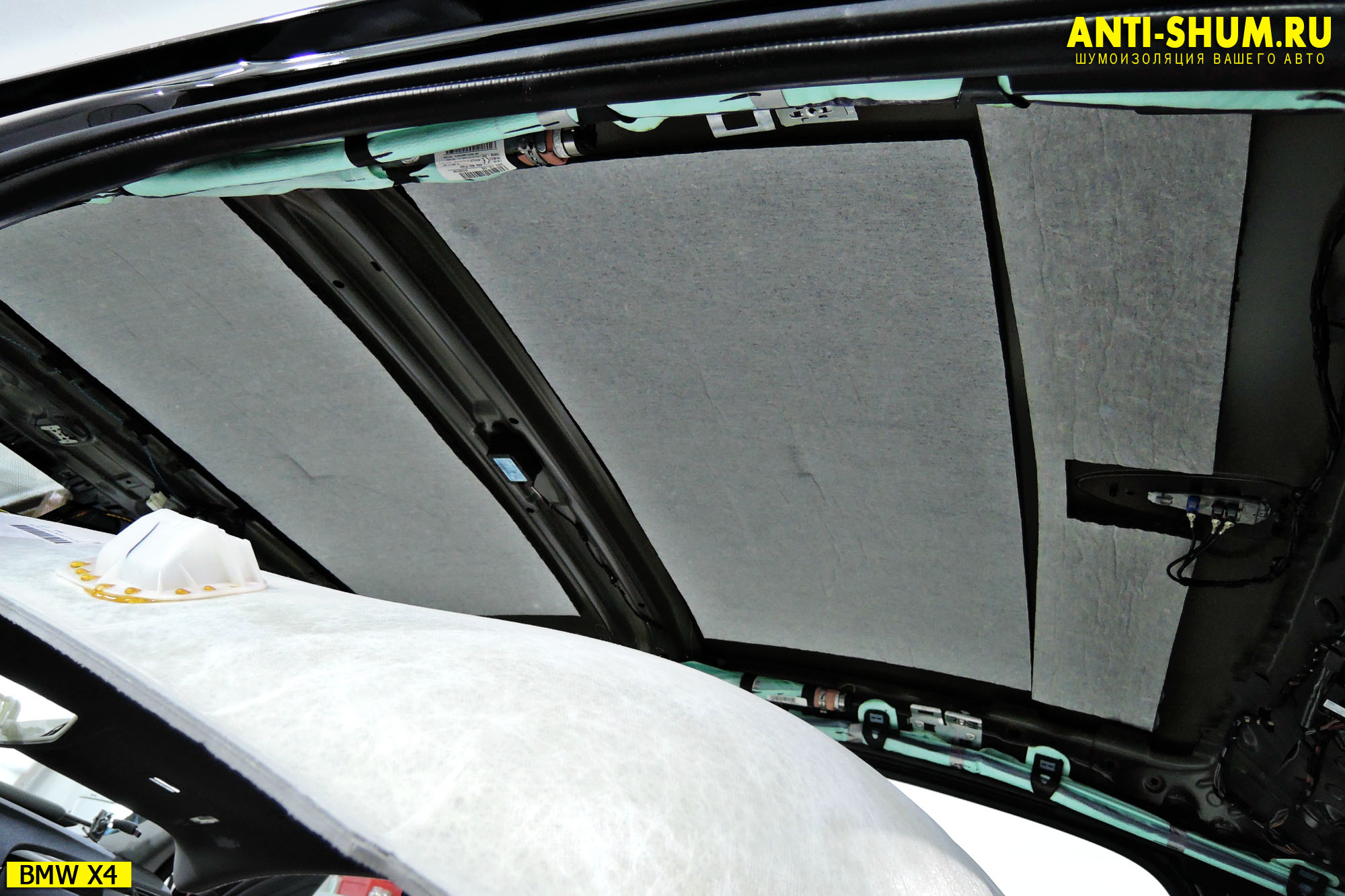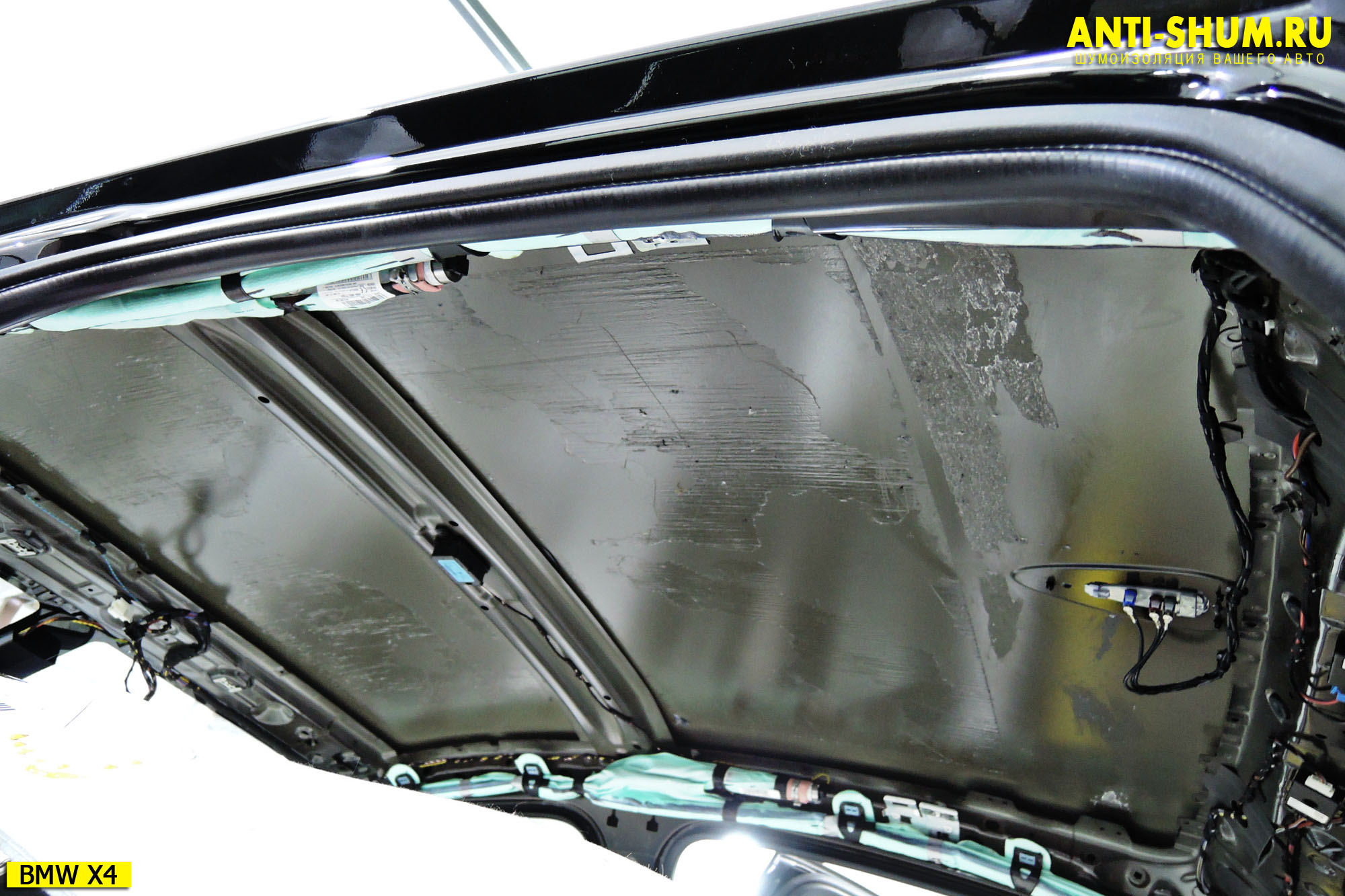 Фотоотчет о полной шумоизоляции салона BMW X4 мы по традиции начнем с шумоизоляции крыши.