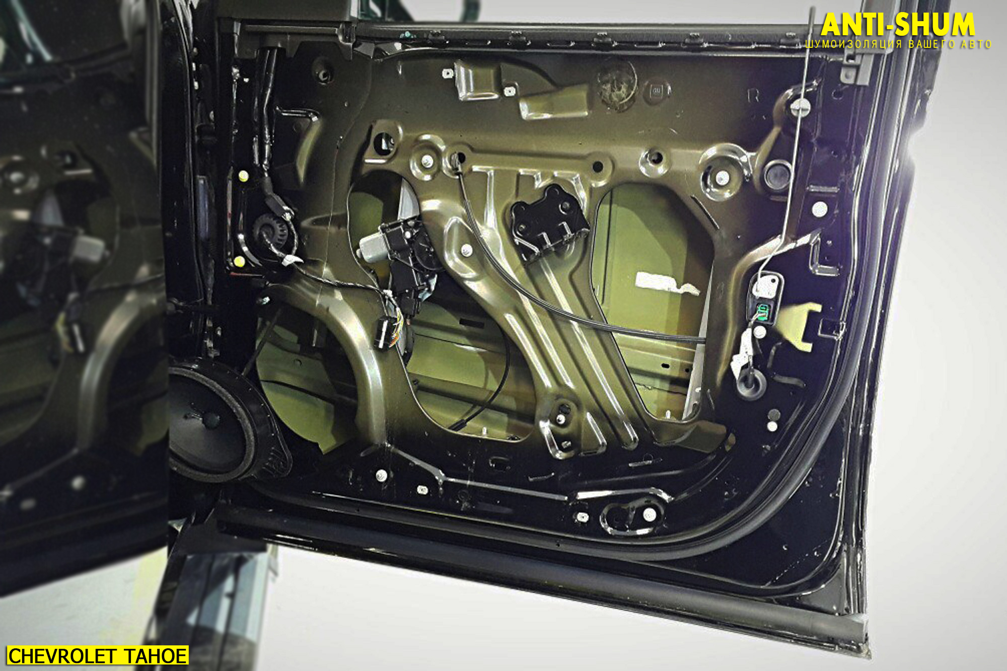 После сборки дверей мы еще раз проверяем работоспособность всех электрических цепей, отключавшихся на время работ, протираем пластик, пылесосим ковровое покрытие, после чего шумоизоляцию Вашего Шевроле Тахо в студии АНТИ-ШУМ можно считать завершенной!