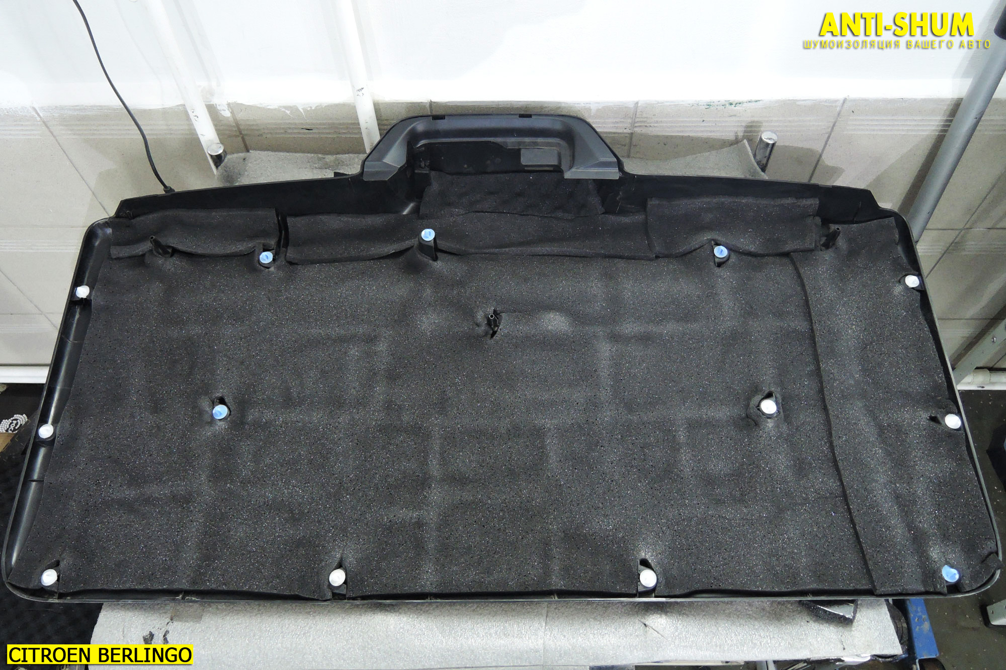 Теперь мы устанавливаем на место штатную обшивку капота и на этом работы по шумоизоляции Citroen Berlingo по варианту «Премиум» завершены. После завершения работ мы еще раз осматриваем салон на предмет качественной сборки. Для нас очень важно чтобы все детали отделки салона, уплотнители и органы управления находились в таком же состоянии и положении, как до начала наших работ. Мы еще раз проверяем работоспособность всех электрических цепей, отключавшихся на время проведения работ, пылесосим салон и протираем пластик. На этом шумоизоляция салона автомобиля Ситроен Берлинго в студии АНТИ-ШУМ завершена!