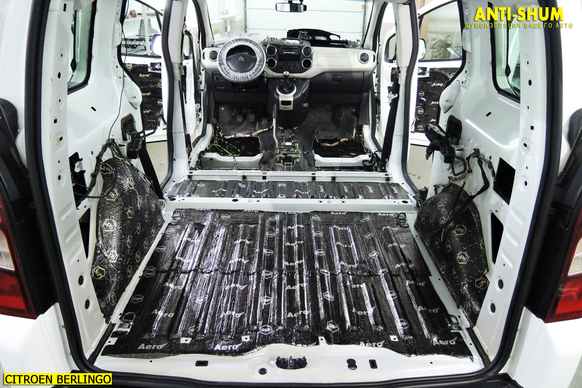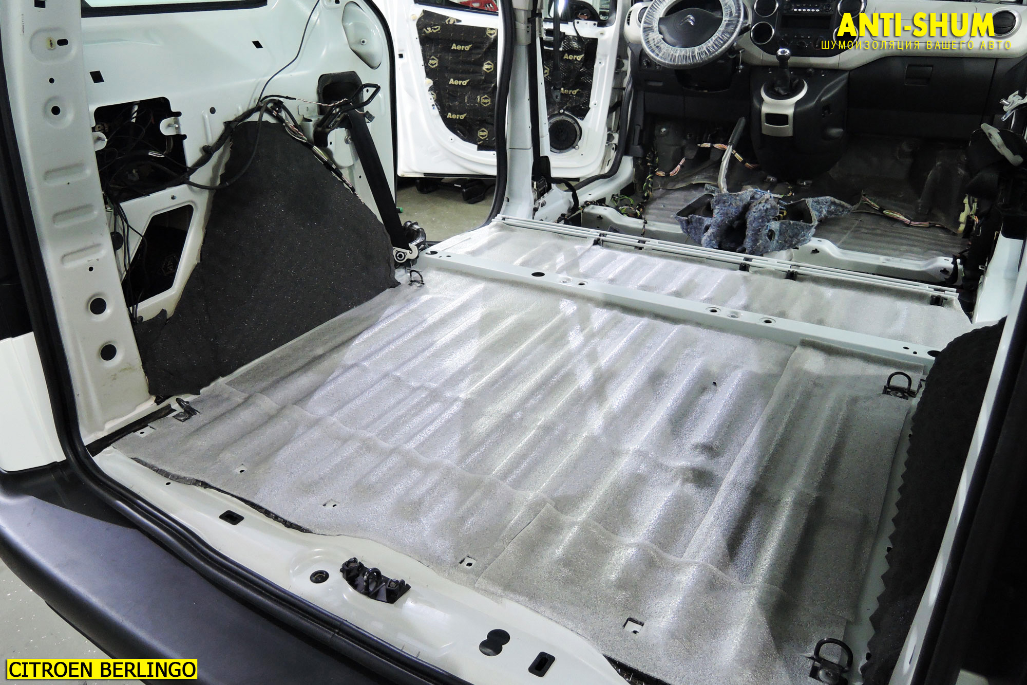 После аккуратной сборки верхней части салона мы переходим к шумоизоляции нижней: днища и багажника Вашего Ситроен Берлинго!
