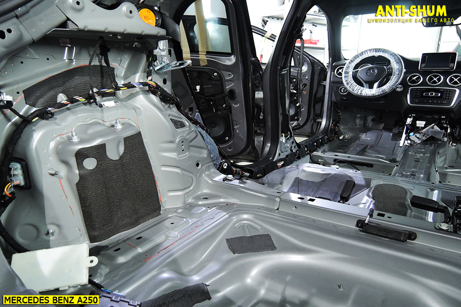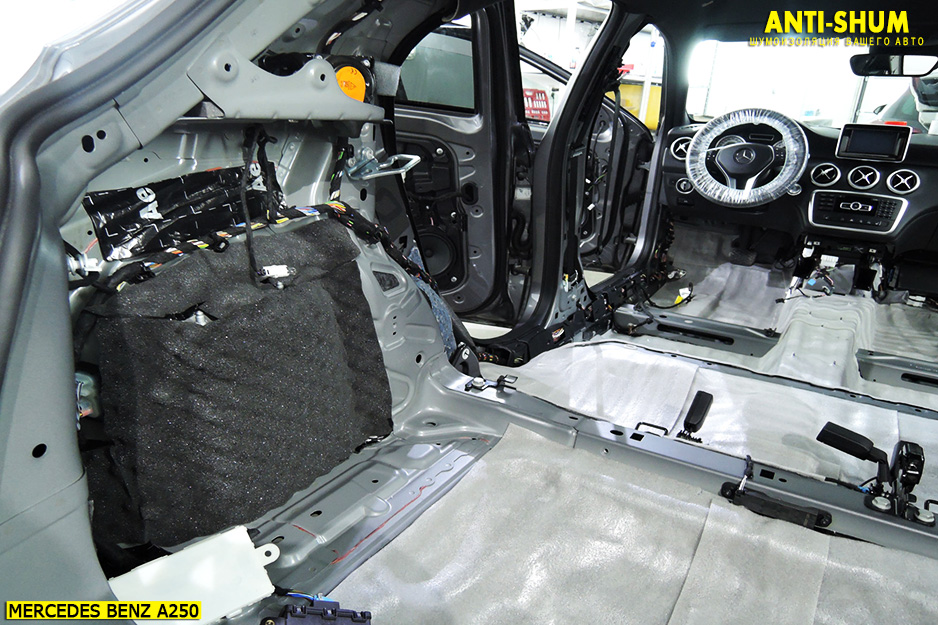 Шумоизоляция автомобиля Mercedes-Benz A-class в Москве, Санкт-Петербурге, Новосибирске, Екатеринбурге, Казани, Нижнем Новгороде, Челябинске, Краснодаре, Ростове-на-Дону, Тюмени и Сочи